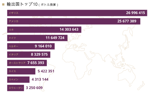 もちろん消費量はフランス国内が1位なのですが、輸出量としては日本は3番目です。