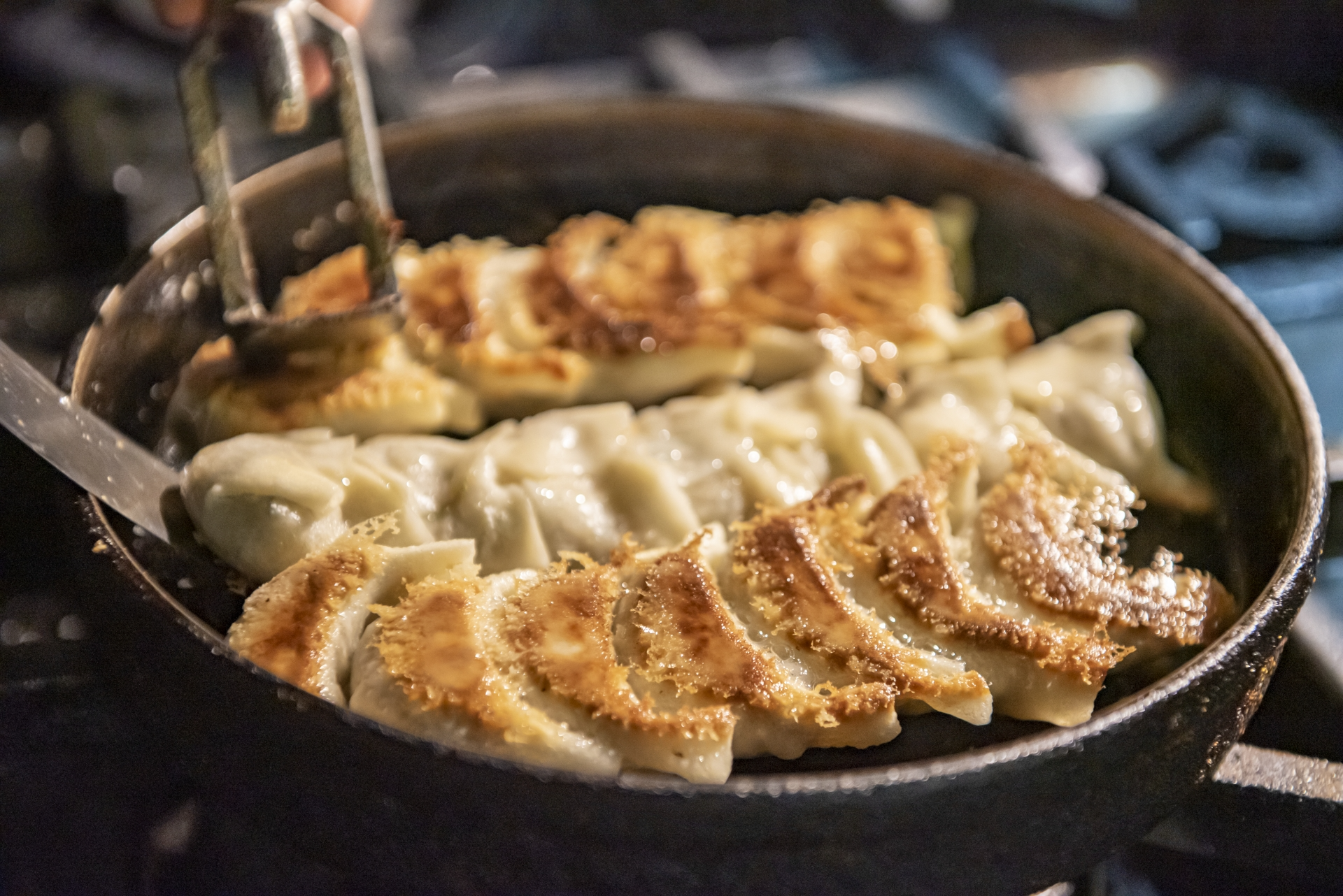 小ぶりでジューシーな鉄鍋餃子+ポン酢+柚子胡椒