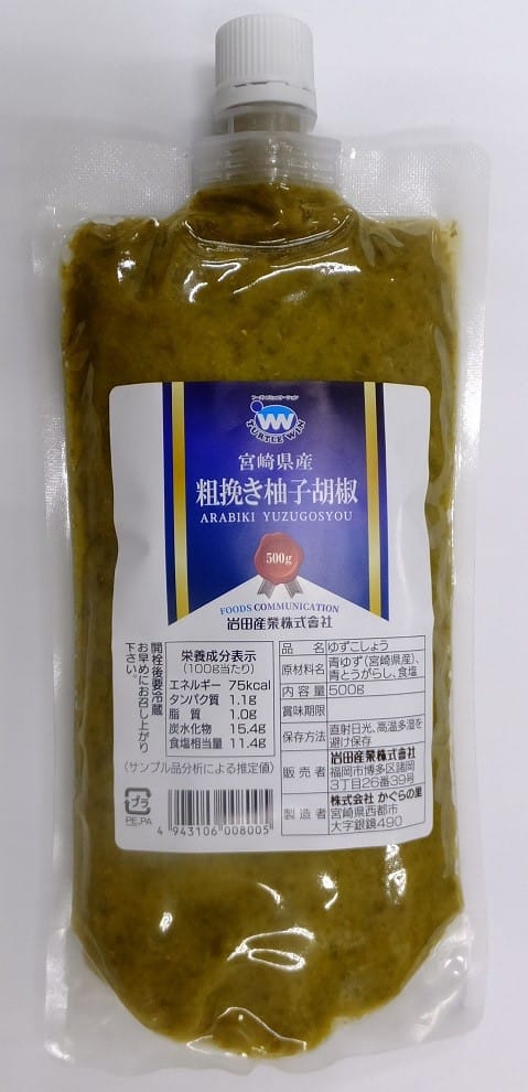 柚子胡椒は、岩田産業様の「宮崎県産粗挽き柚子胡椒」を使用しました。