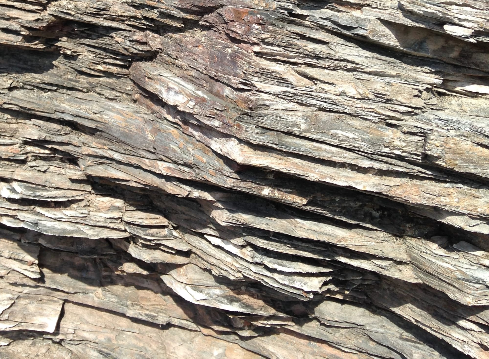 | 特徴 | 比較的若い頁岩由来の岩石。色は黒っぽく、pH値はほぼ中性。片岩より熱も圧力も低い状態で形成されたため脆く砕けやすい。 |