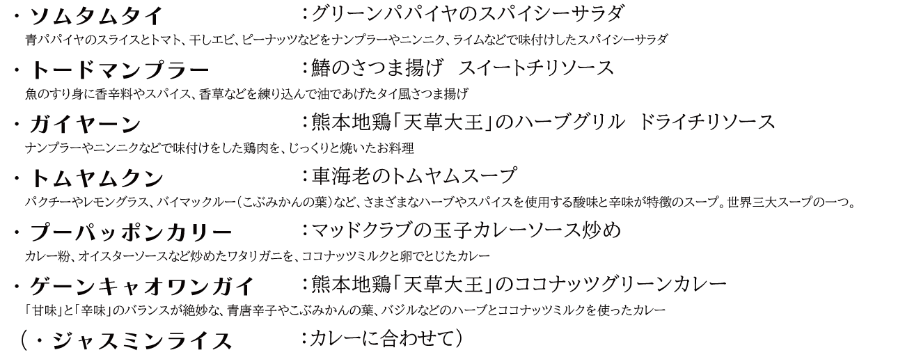 ※タイ料理店の定番メニューを想定
