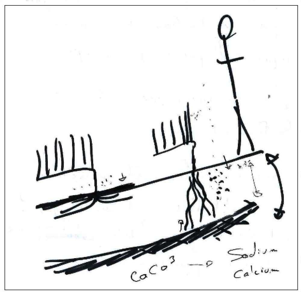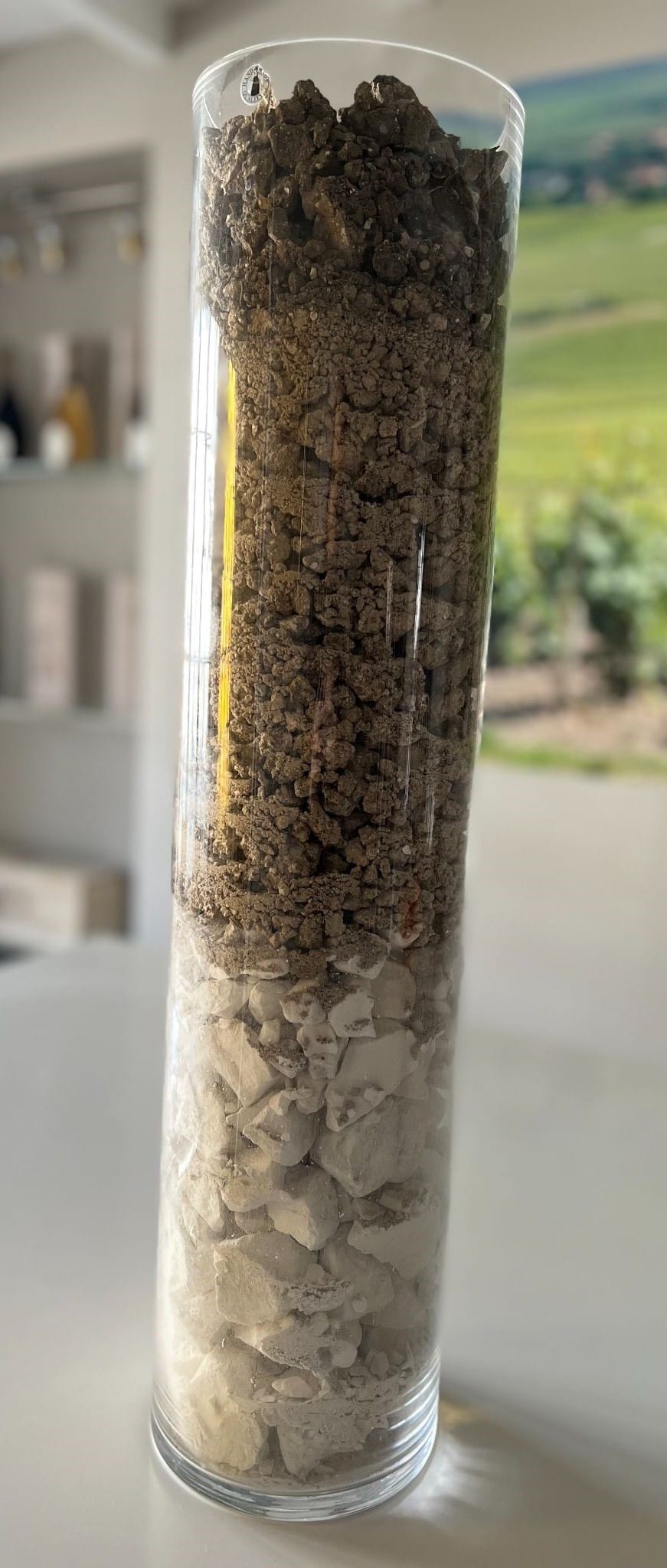 水が母岩のチョーク層まで届くと、チョーク(炭酸カルシウム)を構成するカルシウム(Calcium)とナトリウム(Sodium)という元素が水に溶け出します。それぞれワインの味わいに与える影響が異なっており、カルシウムはワインにパワーと口の中に張り付くようなニュアンスを、ナトリウムは酸味のように刺激的な苦味を与えます。