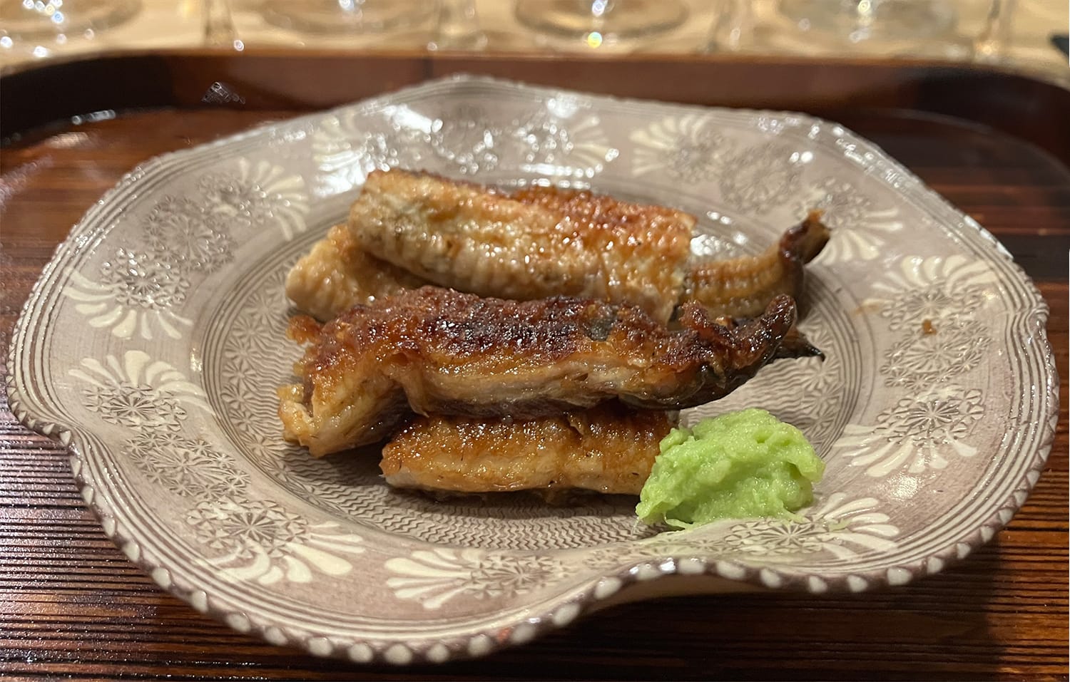 鰻の焼いた脂の香ばしさとワインのほろ苦さが同調し、筋肉質な身をワインのボディがしっかり支えてくれるため、一緒に味わった時の一体感が心地よいマリアージュ。さっぱりと食べられる組み合わせでした。