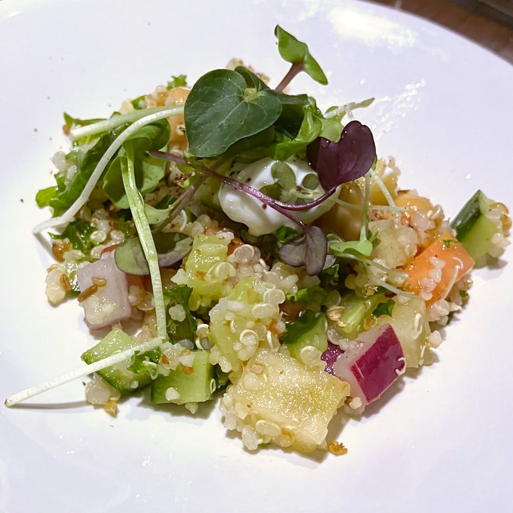 レバノン発祥のクスクスを使ったサラダ(=タブレ)。フレッシュハーブ、野菜、キヌア、