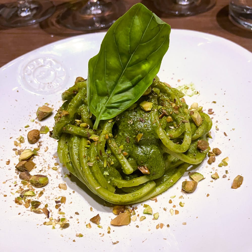 もっちりしたパスタのジェノベーゼで、フェンネルとピスタチオが印象的な味わいでした。 ファランギーナはレモンピールの爽やかさが強調されるとともに、料理の各要素がふわっと心地よく味わえ、ランチで楽しみたいと思わせる組み合わせでした。 ローヌのシラーは方向性がぴったりで、ジェノベーゼの風味は活きたまま赤ワインの果実味や甘味が加わり、異なる料理に昇華されるようなおもしさがあるマリアージュでした。 リュリーはアフターにスパイスの香りが残り、料理を特においしく感じさせてくれました。 シノンがここでも登場!ピスタチオにぴったりと合い、派手ではないもののしみじみおいしいと思わせる組み合わせでした。