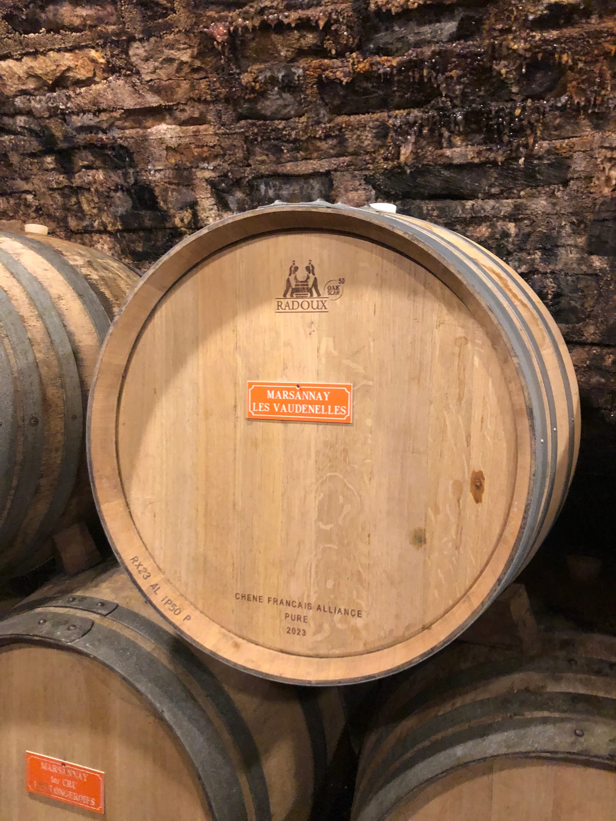 高品質のシャルドネでは自然酵母による樽発酵が一般的です。自然発酵の始まりは培養酵母よりもばらつきが出てしまう場合があります。樽内で果汁放置される時間が長引くことは酢酸菌汚染のリスクの他に溶存酸素(DO)上昇に繋がります。ドミニク・ラフォンは酸化リスクのないステンレスタンクで発酵を始め、発酵が始まった段階でワインをそれぞれの樽に分け移しています。これにより樽内で均一な発酵が進み、不必要なDO上昇を防げます。
