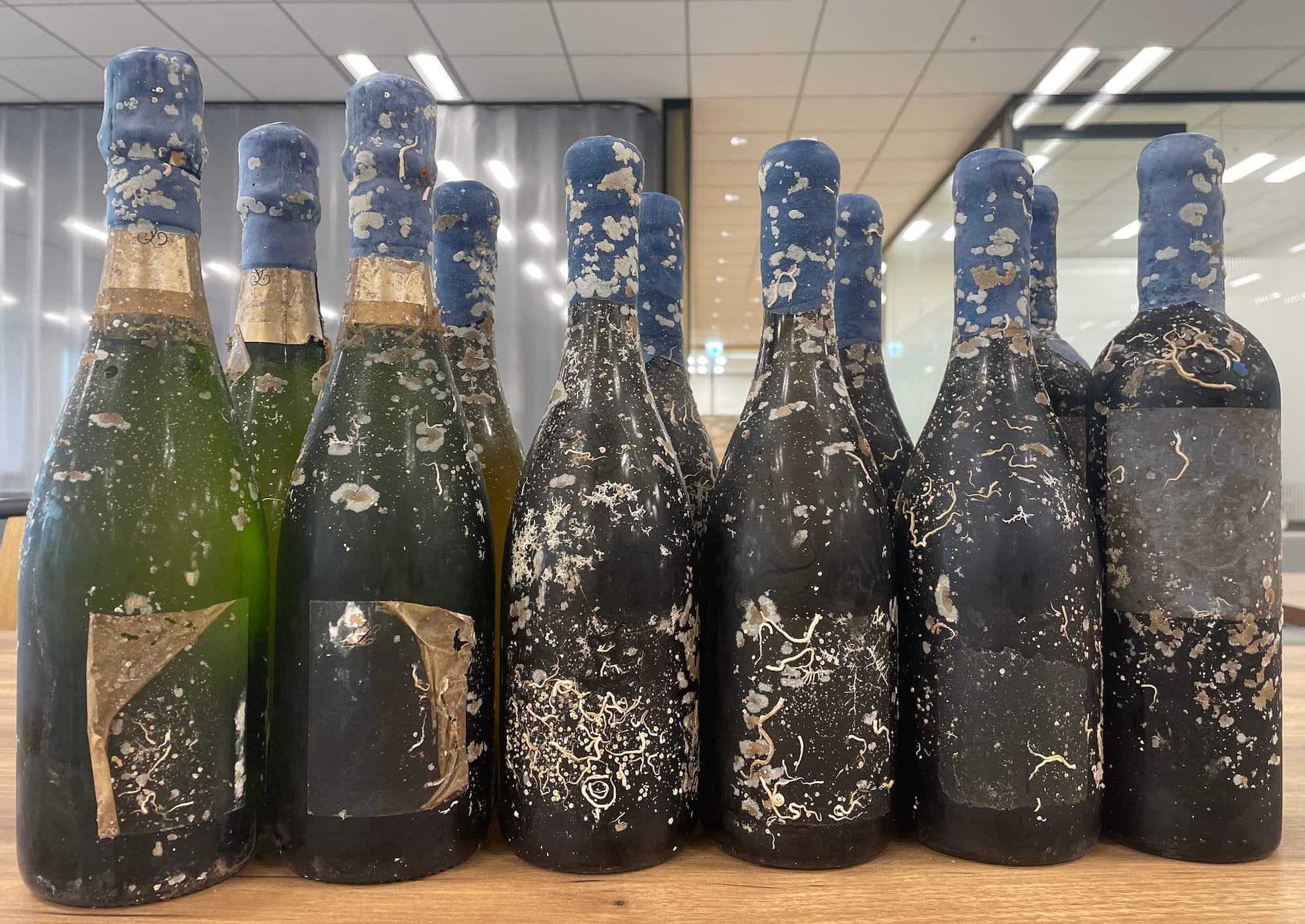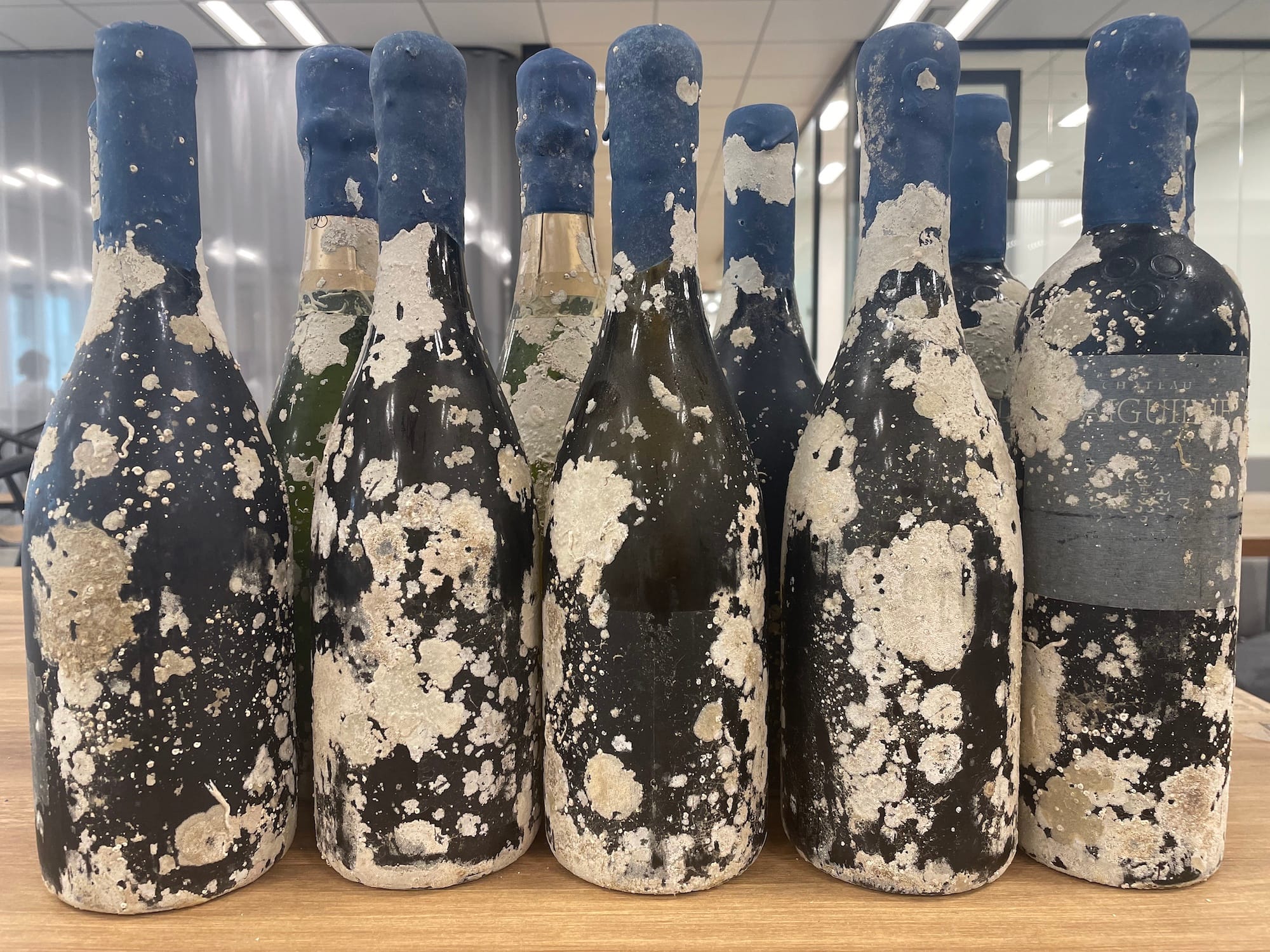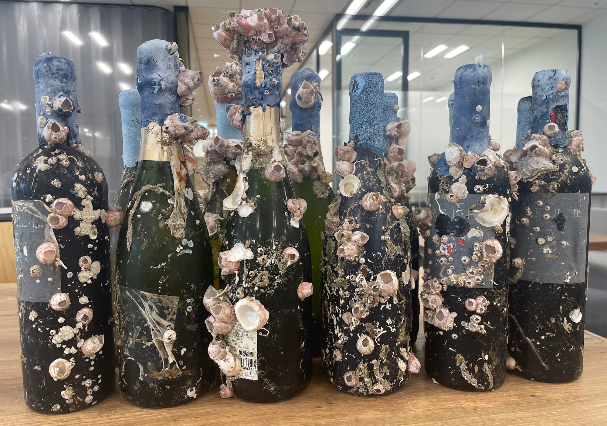 ④湧別については、フジツボや牡蠣による蜜蝋の侵食があり、堅牢なシャンパーニュと元々蝋封されていた白ワインは無事だったものの、赤ワインはボトル内に海水が入ってしまいテイスティングができませんでした。